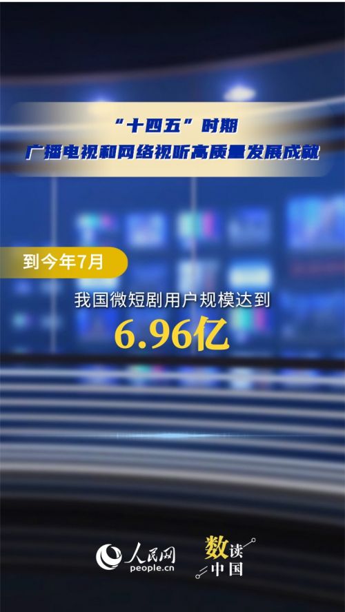 电视大屏用户合计超10亿、网络视听用户达10.9亿、微短剧用户规模达6.96亿……近日,国新办举行新闻发布会介绍,我国在用户、内容、产业等规模上已经成为广播电视大国、网络视听大国。6组数据看“十四五”时期,我国广播电视和网络视听高质量发展成就。