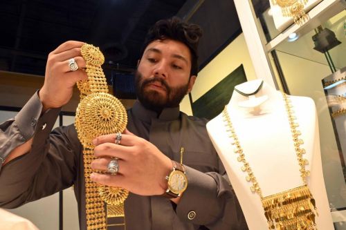 这是5月21日在科威特哈瓦利省第23届国际黄金珠宝展上拍摄的珠宝首饰。新华社发(阿萨德摄)