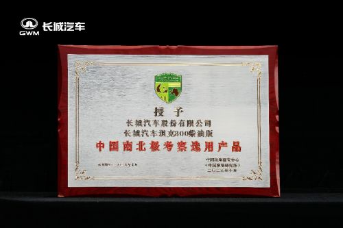 坦克300柴油版被授予“中国南北极考察选用产品”