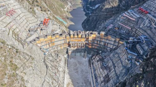 据介绍,参建各方积极克服高原高海拔、低压缺氧和严寒干燥等恶劣环境,攻克了高坝抗震、冬季连续施工、温控防裂等技术难题。今年5月,大坝浇筑过程中成功取出一根长度38.10米的混凝土芯样,相当于12层楼高,打破国内同类坝型大坝取芯纪录。