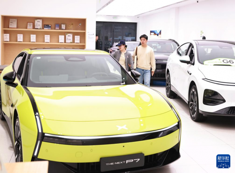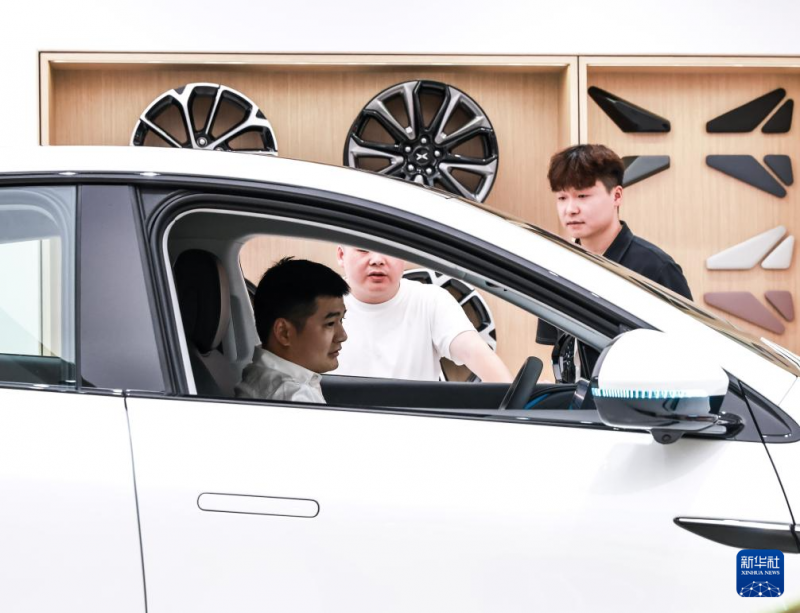 10月14日,在湖北省武汉市武昌区一家商场,顾客在选购新能源汽车。