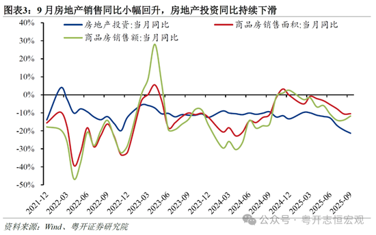 其四,制造业投资从高速增长逐步回落。一是制造业设备更新空间收窄,1-9月设备投资同比由一季度19%的高点持续回落至14%。二是“反内卷”政策有利于改善供需失衡问题,但客观上部分行业推进产能去化,也就是相关行业投资放缓,1-9月电气机械和器材制造业(包含光伏和锂电池等细分行业)投资累计同比为-9.5%。三是终端消费需求不振以及外需后续可能受到的冲击,抑制了企业投资信心和意愿。