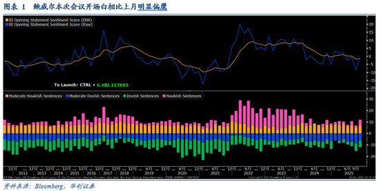 本次会议声明对就业和通胀的看法,相比于9月份没有变化,但对经济的看法边际改善。这一点与近期情况对应:经济增速或明显反弹(GDP now模型预计Q3环比折年率3.9%,蓝筹经济学调查预期为2.5%,彭博一致预期为2.7%),鲍威尔表示,联储内部也普遍上调了对今明两年的经济增长预测。对于就业,依然是“就业增长已经放缓(Job gains have slowed),失业率有所上升但仍处低位(has edged up but remains low)”、“近几个月就业下行风险已经上升(that downside risks to employment rose in recent months)”的表述。对通胀的表述依然是“有所上升并依然较高(moved up and remains somewhat elevated)”。但对经济增长的表述边际改善,从“今年上半年经济活动增长放缓(moderated in the first half of the year)”修改为“经济活动一直在以温和的速度扩张(has been expanding at a moderate pace)”。