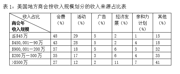 商协会作为非营利组织的会员制组织的传统的收入来源是会费。但近30年来,国外商协会的收入结构模式已发生明显的变化。据美国协会高管协会(ASAE)的研究报告,美国行业协会1953年会费收入占总收入比重为95.7%,而到2016年已经下降到45.4%左右,专业协会下降为30%左右,英国也经历了类似的变化。另据美国商会高管协会(ACCE)的研究报告,美英各地商会的会费收入过去一直占70%或更多。但今天的大型商会中,会费占总收入的比重已经下降到27%至37%不等。