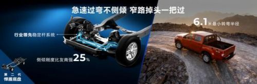 底盘方面,RE-MAX瑞迈搭载与D-MAX同源的第二代悍盾底盘,采用二纵九横车架结构(长轴)与业内独有的纵梁曲线式焊接工艺,轻松应对重载挑战。领先的稳定杆系统与6.1米最小转弯半径,让过弯更稳健从容。行业独有的分体式球头设计及6片板簧选项,无惧颠簸路况,这副硬核底盘成为用户前行路上最坚实的“定心骨”。