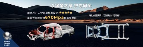 车身按照严苛的澳洲AN-CAP五星标准设计,大面积采用670Mpa超高强度钢,创新应用“双梯形封闭结构”堡垒式底盘,为乘员构筑坚实生存空间。系统性的底盘防护布局可主动规避刮碰风险,特别设计的车轮止侵块在碰撞时有效保护乘员与底盘部件。引擎盖行人保护溃缩结构等设计,则体现了对车外行人安全的周全考量。