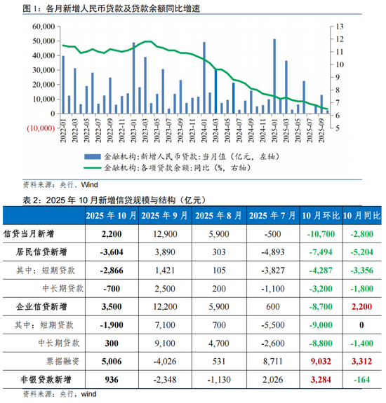 一、10月信贷增速延续回落,票据融资支撑加大