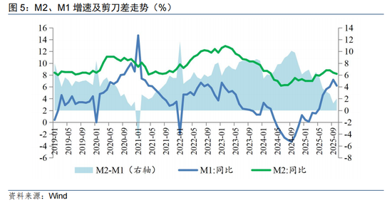 M2-M1剪刀差环比扩大至2%,但仍保持在2021年4月以来的次低点,资金转化为活期存款的趋势延续,反映出企业生产经营活跃度提升、个人投资消费需求逐步回暖等积极信号。
