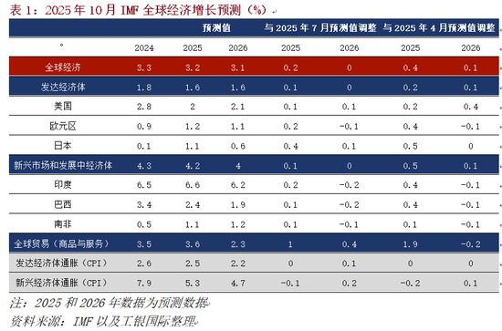 在纷繁现象中寻找到深埋其后的演化规律,是宏观经济研究的使命。当规律被正确理解,过去才不会被误解,当下才能被准确定位,未来亦能获得有边界的推演空间。宏观研究的意义,正是在于从历史中提炼出具有公理性质的底层逻辑。唯有把握这些能穿越周期的演化规律,方能避免被过去的表象误导,并为未来的趋势推演建立可信的边界。进入2026年,人们越发清晰地意识到,全球经济正在脱离线性轨道,迈入一个由非线性、路径依赖与适应性共同塑造的复杂系统。参考国际货币基金组织(IMF)最新预测,全球经济2025年和2026年增长预期值分别为3.2%和3.1%。相比4月预测的2.8%和3.0%有所改善,但2026年增长预测相比2024年10月仍下调了接近0.2个百分点,显示多重不确定因素下,全球经济重新进入温和增长与高度不确定性交织的阶段。