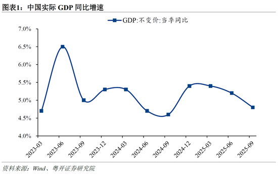 第三,全年经济呈现出“前高后低”走势,财政在主导经济运行节奏。2025年经济前三季度同比增长5.2%,预计四季度GDP同比增长4.6%,全年大概率能够实现5%的增长目标,全年呈现“前高后低”态势,这与前些年的“U型”走势不同,主要是源于经济内生动能不足,以及宏观政策力度和效果边际递减。从内生动能看,居民消费意愿仍有待提振,房地产销售和投资持续低迷,民间投资受终端需求不足制约而持续下行,地方政府发展经济的意愿和能力则受到化债压力和房地产调整的拖累。从政策层面看,宏观政策尤其是财政靠前发力支撑了上半年经济,财政靠前发力支持上半年基建投资,以旧换新和设备更新上半年额度更高支持消费和制造业投资增速在上半年较好,但同时也导致下半年政策力度相对不足。