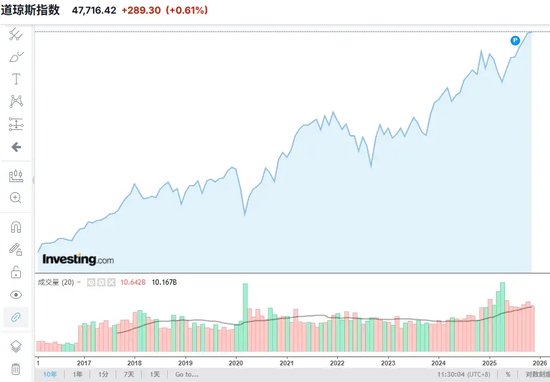 道琼斯指数11月29日收盘数据,已涨至47000多点  英为财情截图