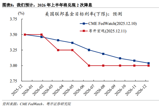 (二)美联储已重启降息,我们认为2026年可能继续降息2次,降息节奏可能前置