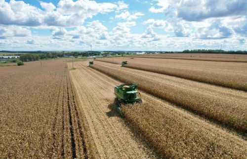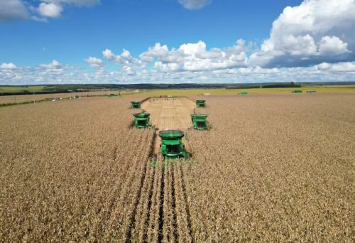 北大荒农垦集团有限公司黑龙江建设农场有限公司玉米收获作业现场。新华社发(许颖献摄)