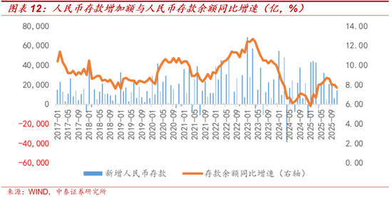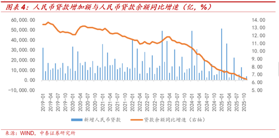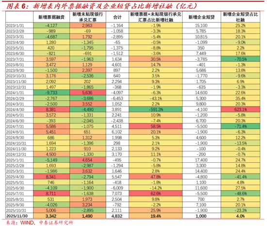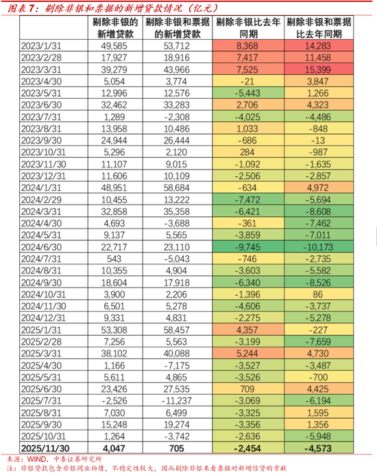 具体来看:1、企业贷款情况:短贷与票据冲量,中长贷同比少增。票据冲量明显,中长贷同比均少增。具体数据来看,11月企业短贷、中长期贷款、票据净融资增量分别为+1000亿、+1700亿和+3342亿元,增量较上年同期变化分别为+1100、-400亿和+2119亿。2、居民贷款情况:短贷与中长贷均同比少增,反映消费和地产景气度均仍在低位(以及去年消费补贴在下半年开启,形成相对高基数)。具体数据来看,11月居民短贷、中长贷增量分别为-2158亿元、+100亿元,较去年同期分别变化-1788、-2900亿。3、非银信贷:减少147亿元,较上年同期多增554亿。