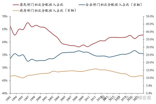 图1:1992-2022年我国三部门收入占比变化(初次分配)