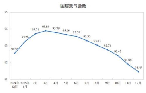 2025年12月份,房地产开发景气指数(简称“国房景气指数”)为91.45。