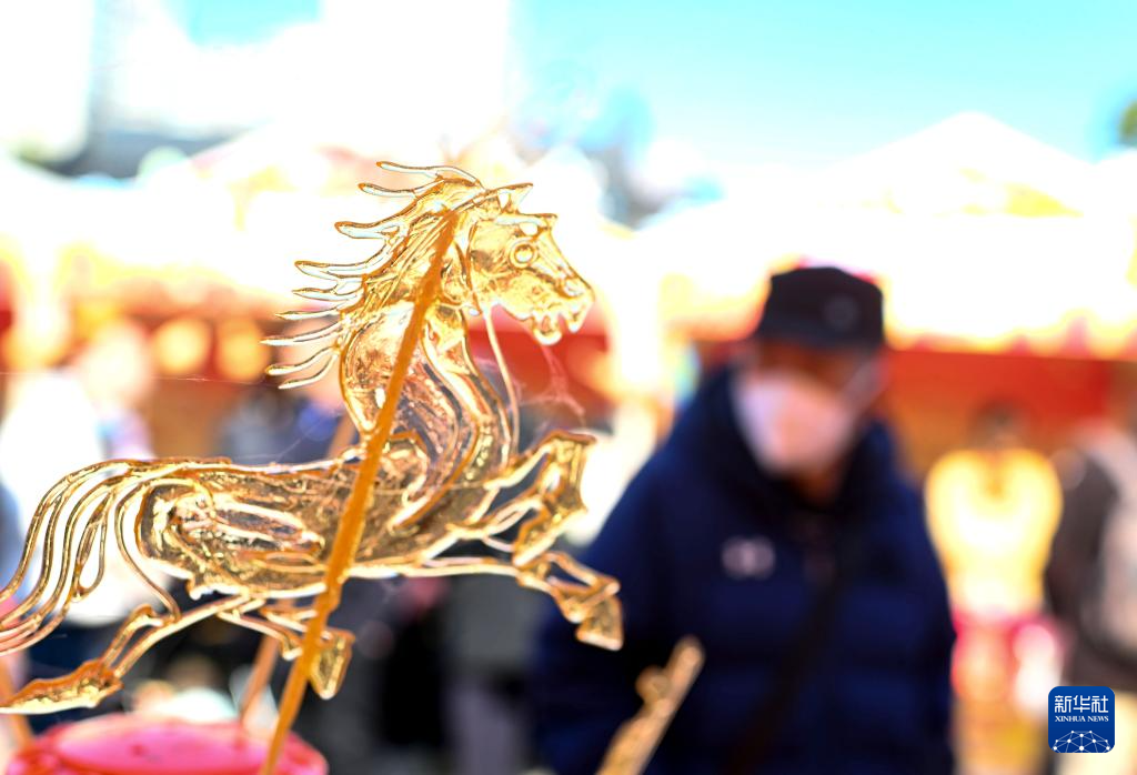 1月23日在江苏南京宝船厂遗址公园年货集市拍摄的马年糖画。