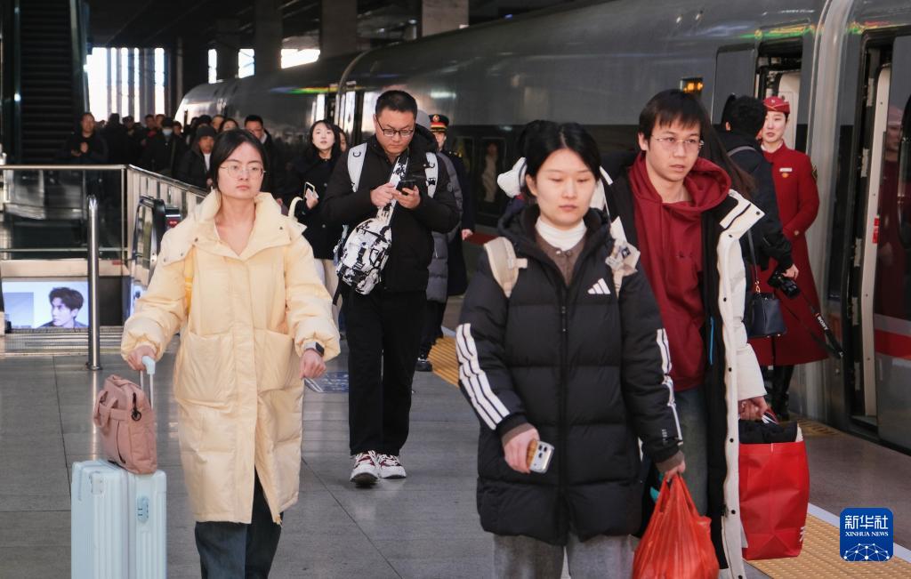 1月26日,旅客在天津西站准备上车。新华社发(杨宝森 摄)