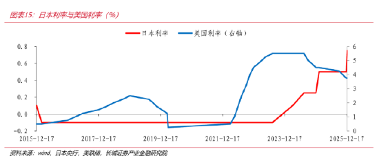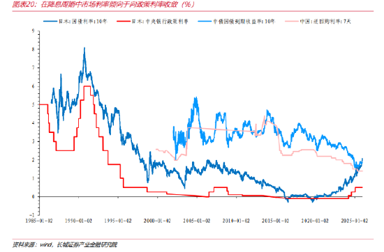 参考日本,在1991年至2020年的长期降息与宽松周期中,10年期国债收益率与央行政策利率呈现紧密收敛的态势。特别是在政策利率逼近并进入零及负区间后,超宽松的货币政策立场压制了整体的利率曲线,使得长端利率的波动空间被极度压缩。例如,在2001年降息至零利率后,2年和10年日债的收益率中枢曾长期分别在0.09%和1.32%附近窄幅波动,与接近零的政策利率利差极小,政策利率的“地板”效应非常显著。这一时期,央行通过量化宽松(QE)和收益率曲线控制(YCC)等非常规工具,强力引导市场预期,确保了市场利率向政策“锚”的靠拢。然而,2020年后日本央行开始逐渐退出超宽松政策,特别是2024年以来迈入加息周期,情况发生反转。当政策利率出现边际上行信号甚至开始实质性加息时(例如2024年3月19日日本结束YCC开启货币政策正常化,政策利率从-0.1%上调至0%-0.1%),市场利率(尤其是长端利率)的反应更为剧烈,导致利差显著走阔。截至2025年12月,日本10年期国债收益率一度升至2.0%以上,远高于0.75%的政策利率。这种发散主要源于市场对长期通胀和经济增长的重新定价,同时也有政府大规模的财政刺激计划(如2025财年补充预算达18.3万亿日元)带来的财政供给压力的担忧。