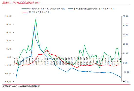 供给端来看,2016年的供给侧改革通过行政措施快速推进,政策见效期大概在6-8个月。对比当下,“反内卷”政策旨在通过规范行业竞争、引导产能优化等方式改善供需结构,其作用机制相较于2016年更具持续性。从实际效果看,部分行业,如煤炭、钢铁等,其供需关系的改善和价格的企稳回升已在2025年初步显现,但整体工业产能利用率的提升仍需要时间(2025年前三季度的工业产能利用率在74%)。且11月工业企业利润单月同比较10月降幅扩大7.6个百分点,压力仍显。