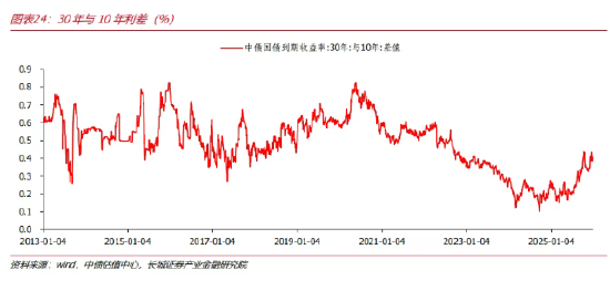 市场实际走势验证了这一判断:2025年下半年以来,30年期与10年期国债利差持续走阔,先后突破30基点,并于11月后进一步扩大至40基点左右,且目前已来到45基点左右。我们在前期报告《债市周观察(12.8-12.14)——30年期与10年期国债利差再走阔》中明确指出,“未来一段时间,超长债(30年)-10年利差可能维持在35-45bp之间”。