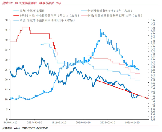 从利率下限支撑位来看,依据我们前文的逻辑框架,在高质量发展与经济结构转型一以贯之、货币政策与财政政策整体保持谨慎的宏观背景下,10年期国债收益率保持相对平缓,2024年的快速下行可能更多是临时性超调,2026年有望逐步向通道靠拢并延续温和下行趋势,区间下沿或接近1.6%,但过程中仍不乏阶段性波动。