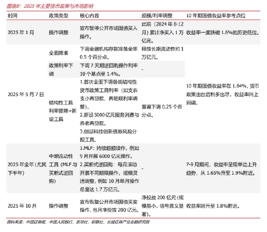 路径上,与美国、日本等直接实施“零利率”或“负利率”的框架不同,中国以银行为主导的金融体系意味着政策利率需要维持在合理水平,以保持融体系的稳健性。考虑到当前价格形势步入温和修复通道,我们未来可能会将使用更加渐进式、结构化的措施,避免“一步到位”式的宽松,以兼顾长期利率的下行潜力。时机上,传统的经济因素,如房地产市场的调整或单月经济数据的波动,其作为降息直接触发因素的重要性已相对下降。我们认为未来降息更可能呈现“量变到质变式”和“触发式”的双重特征,有可能银行净息差经过三个季度到一年的调整,金融体系稳健性进一步增强,由于经济仍处于复苏进程中,那么在此之下可能给予一次“量变到质变式”的小幅降息(如10BP左右),而预期之外的降息往往跟股市偏弱(2024年9月的大幅降息)和中美关税(2025年5月的降息)更为相关。同时,宏观政策的“取向一致性”被提升到更重要位置,货币政策将与更加积极的财政政策密切协同配合。