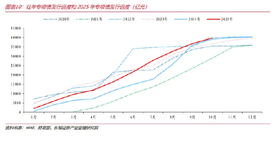 2025年财政政策的突出表现为“靠前发力”。财政政策在2025年仍承担起逆周期调节的主要职责。2024年前三季度货币政策持续发力、财政保持定力;四季度财政政策显著加码,市场信心增强。2025年财政政策则自年初开始主动前置,超长期特别国债和新增专项债券发行进度均显著快于2024年同期,政策的着力点也侧重于加快资金下达和形成实物工作量,从而显著提升了支出的强度与进度。这一安排使得财政政策成为2025年宏观宽松的一个重要主导力量,货币政策则更多转向结构调控与协同发力。
