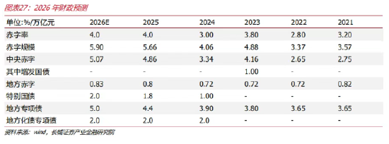 对于债市供给,2025年12月,中央经济工作会议和政治局会议仍维持定调“积极的财政政策”,这是给我国经济在复苏进程中的又一强心针,因此,我们预估2026年财政赤字率可能仍然维持4.0%,那么经过我们测算,2026年我国GDP增速仍维持在4.8%-5.0%左右,那么超长债的行情可能在一定程度受到财政供给的影响。