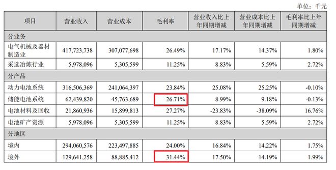 不过这都赶不上出海赚钱,宁德在境内的毛利率是24%,但在境外却能达到31.44%。