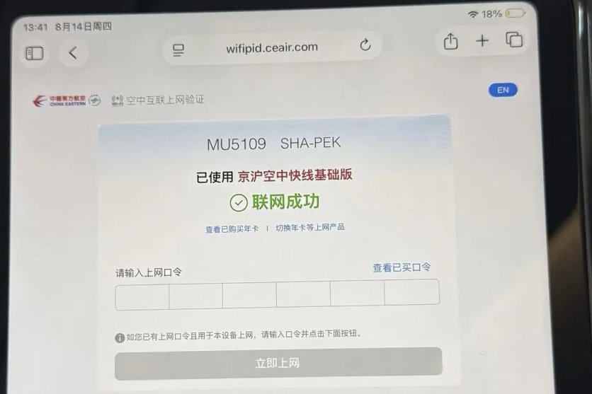 2025-10-11总台记者 肖冰毅 曹丹 记者从中国东方航空了解到,从10月11日起,该航司所有宽体机执行的国内“空中快线”航班提供经济舱全舱位免费Wi-Fi服务,满足旅...